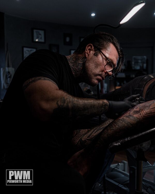 Lee Morrison, alongside Dirtnap, is the founder of Avant Garde, a private Tattoo Studio situated just opposite the Brewery Quarter in Cheltenham, in a Grade II listed Regency Building. Avant Garde was opened in April 2021 and was created to provide a relaxed environment. The intention was to slow things down so Lee could take his time over fewer pieces.